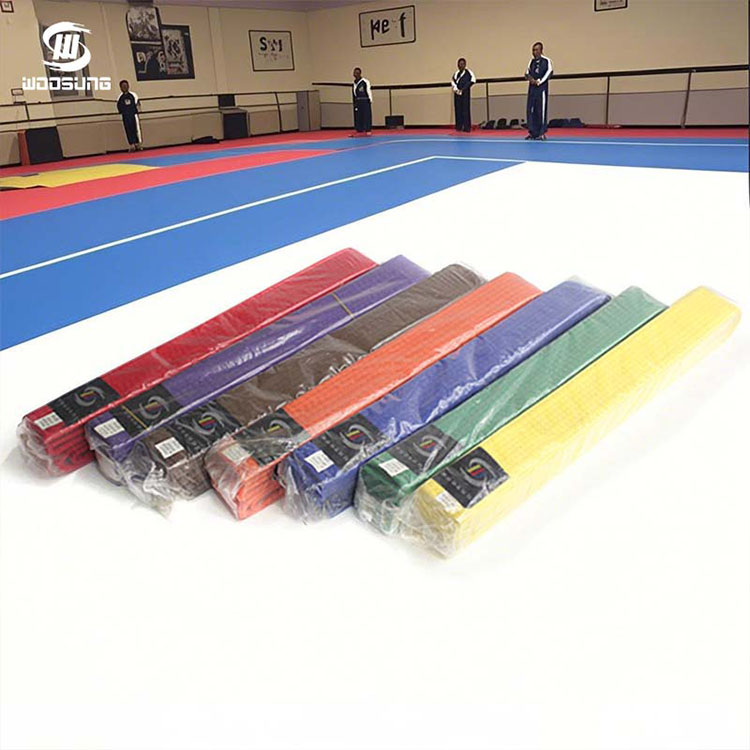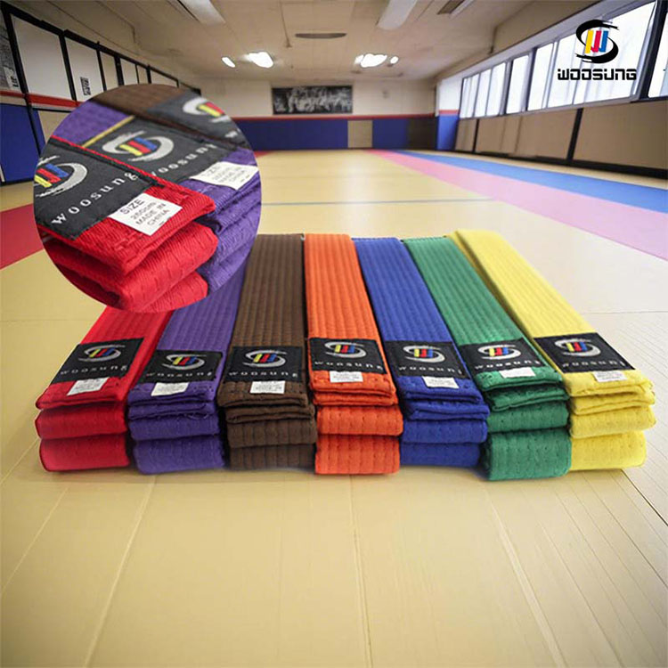Evolutio colorum cinguli karati directa est repercussio artificii artificis et incrementum mentis. WOOSUNG Cinguli Karate militaribus artibus traditionibus stricte inhaerent, offerentes plenam colorum bene pro omnibus ordinibus: cingula alba initium et initium novum significant, humilitatem et sitim cognitionis incipientium repraesentantes; colores intermedii ut flavus, aurantiacus, viridis, caeruleus, technicis fundamentalibus magisterio medici respondet ac perspiciendis principiis militarium artium intellegendis; zonis brunneae maturitatem ac stabilitatem in arte significant, lapidem crucialem versus superiora; et cingula nigra transcendentiam et legatum significant, significans medicum nucleos technicas tenere et novum iter explorandi essentiae militaris artium conscendisse. Pro dojos colori personali requisitis, speciales stilos consuescere possumus ut duo-toni vel cingula striata, de traditionibus diversarum artium militarium scholarum.