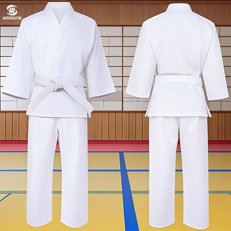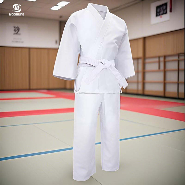 Core design principiumWOOSUNGSuper Lux Karate Uniform valde clarum est: ad extenuandum altiore pondus dum karate uniformibus signis adhaerens, athletas permittens magis in arte sua versari.