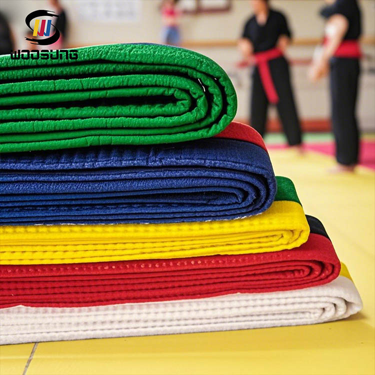 In cotidiana dojo docens, gradatim examina et coetus sessionum disciplinarum, WOOSUNG Taekwondo Duplex Color Cingulum conservat aspectum aspectum constantem et normatum.