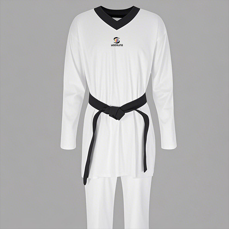 WOOSUNG fabricae TKD Taekwondo uniformis factae est ex fabricae bombace qualitate alta, quae est spirabilis, consolatoria, durabilis et non deformat. OEM customisationis officia quae in logo Typographia praesto sunt etiam ad usus necessarios et prudentiam et personalizationem pertinentes.